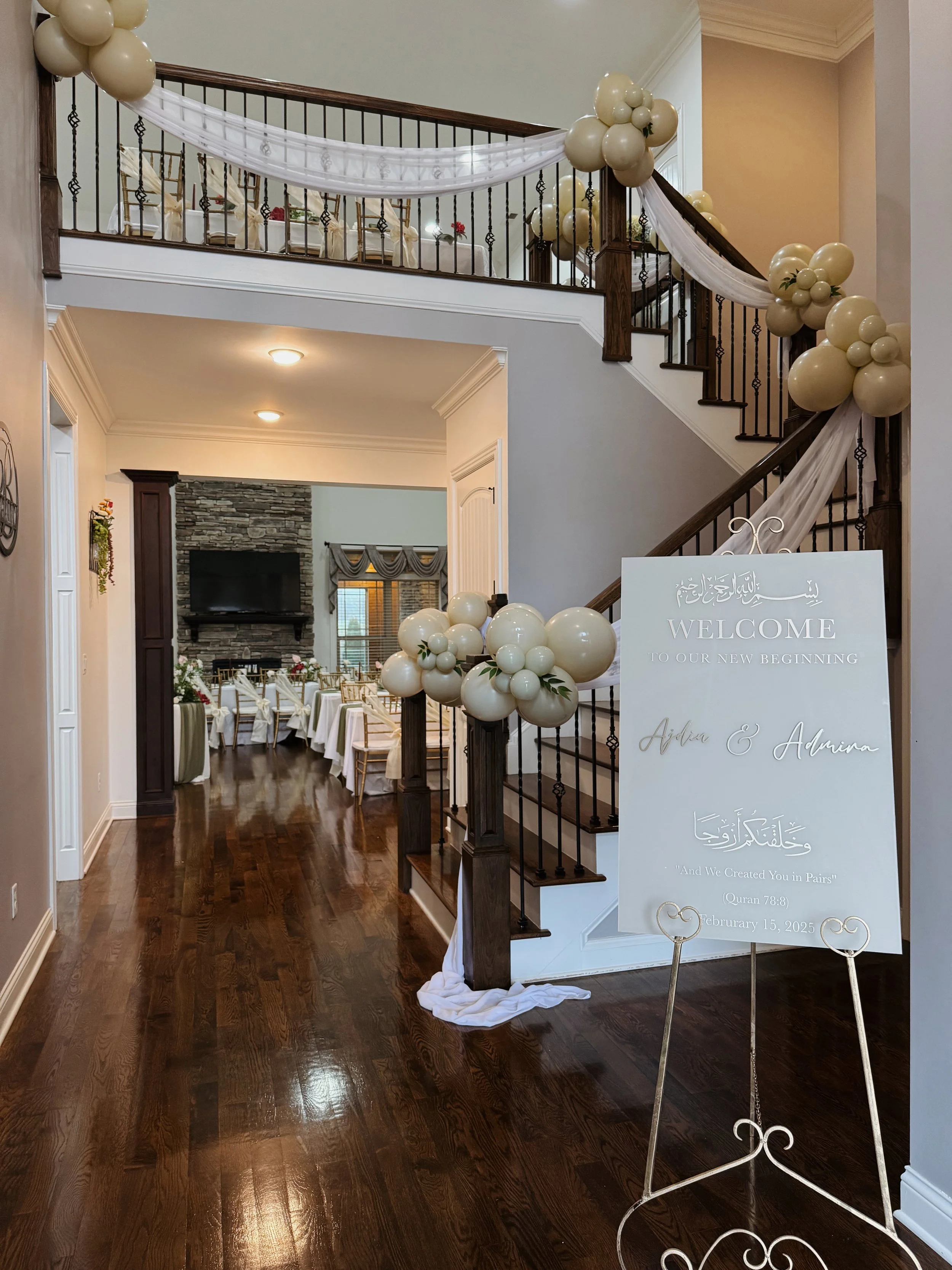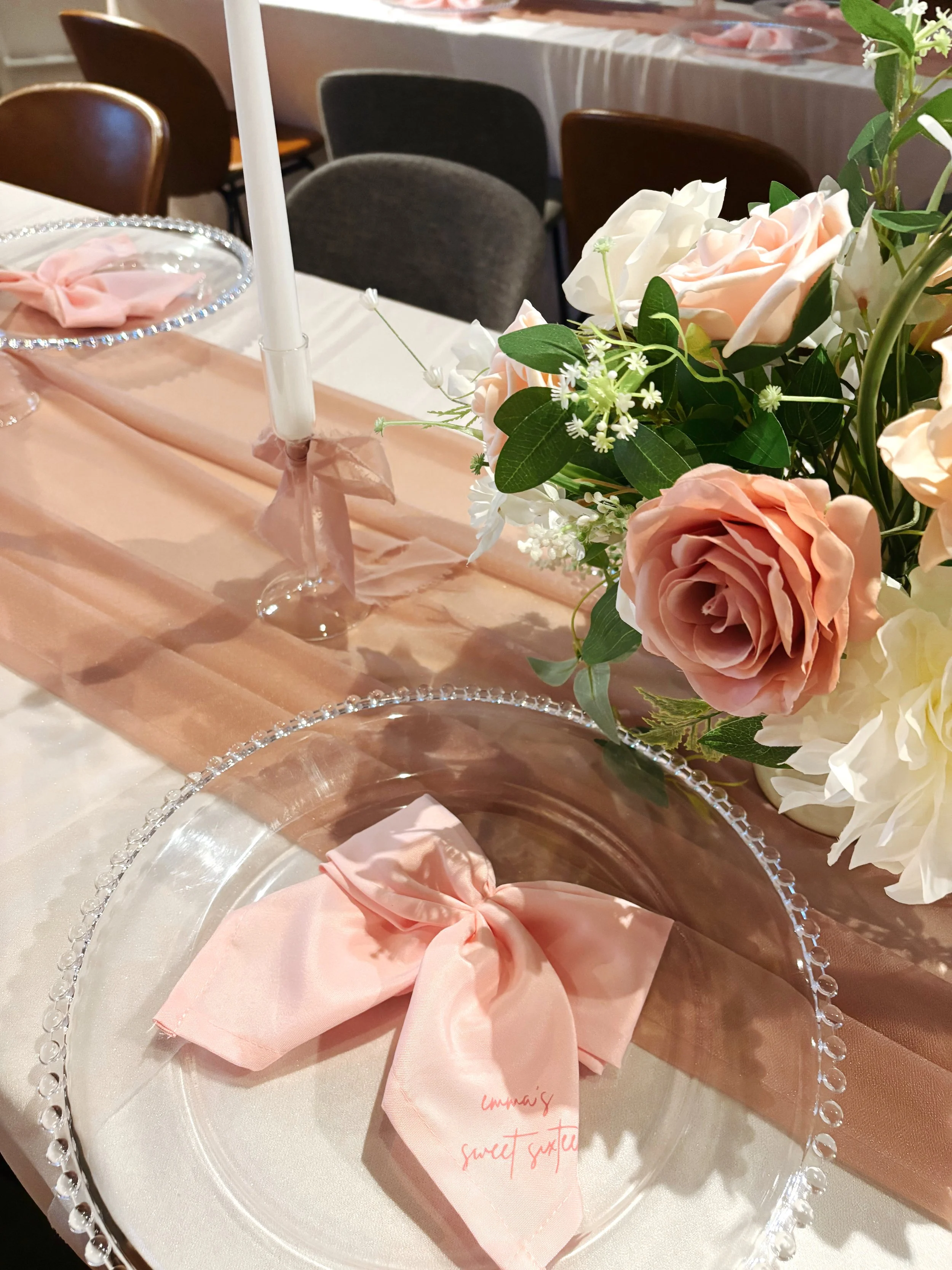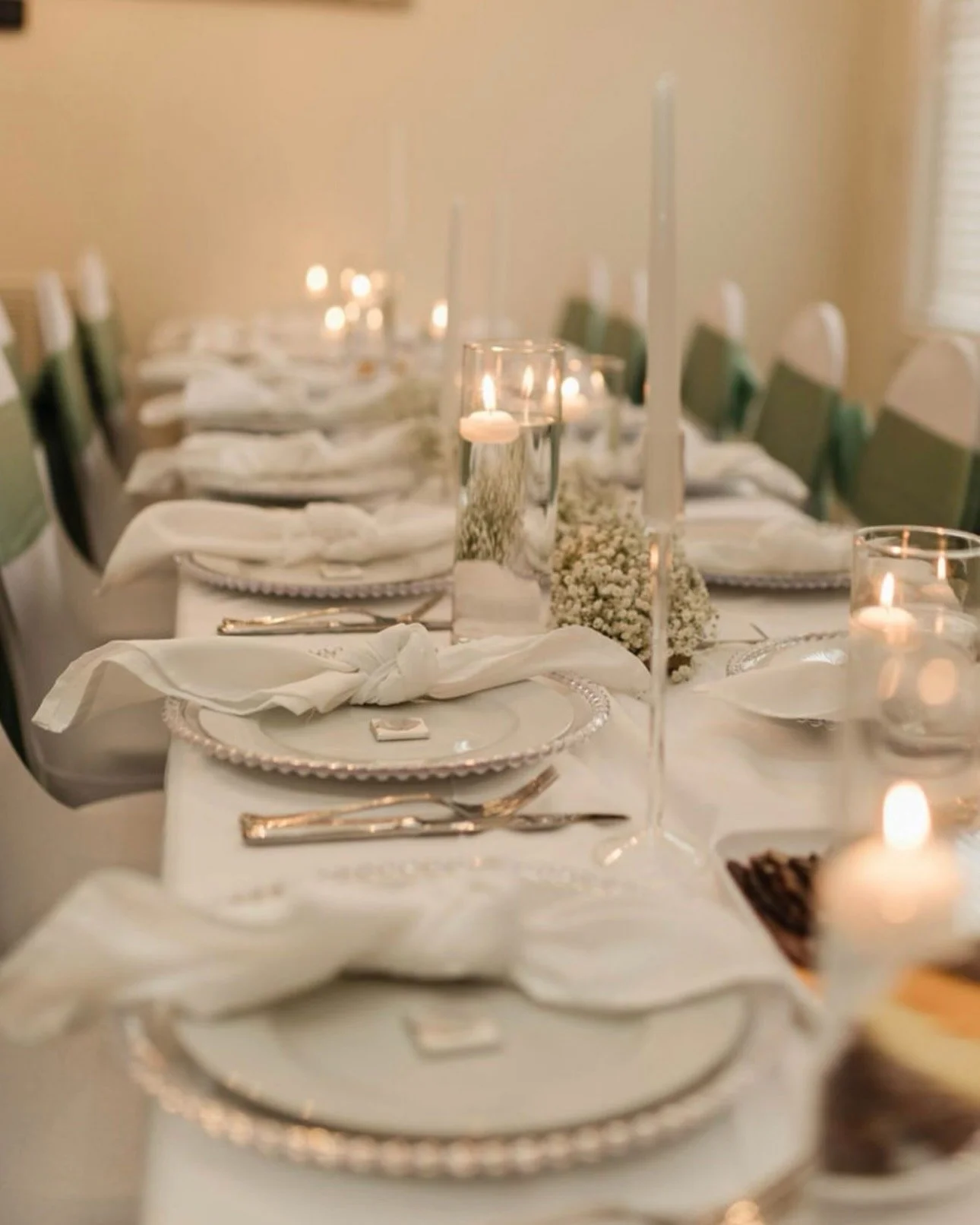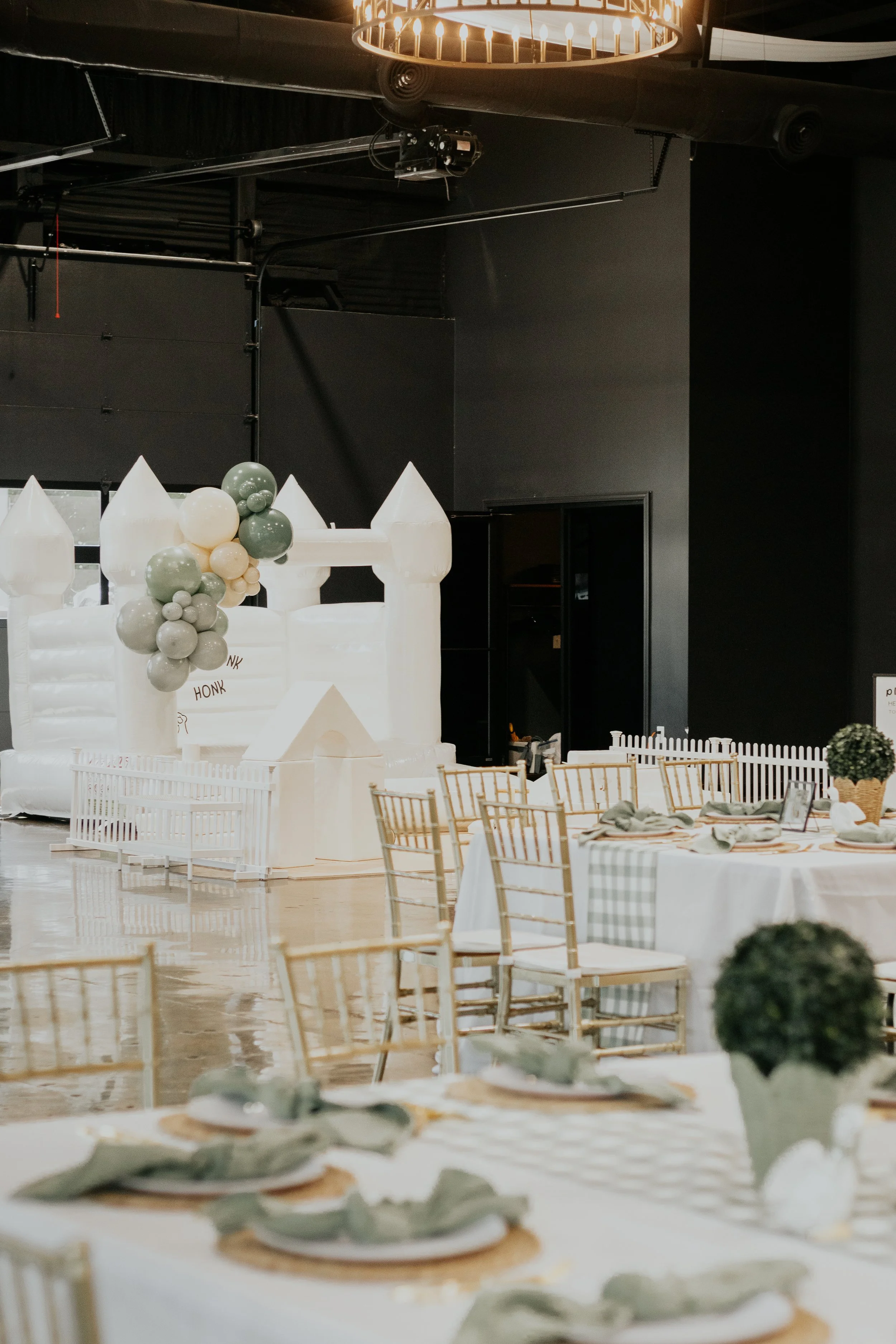 This package is perfect for birthdays, baby showers, bridal showers, intimate weddings, and private dinners with up to 30 guests. It includes setup and pickup (please note that pickup does not include full breakdown), tablecloths, four centerpieces, napkin rentals, charger plate rentals, one standard backdrop with an 8-foot basic balloon garland, and a welcome sign with easel rental.