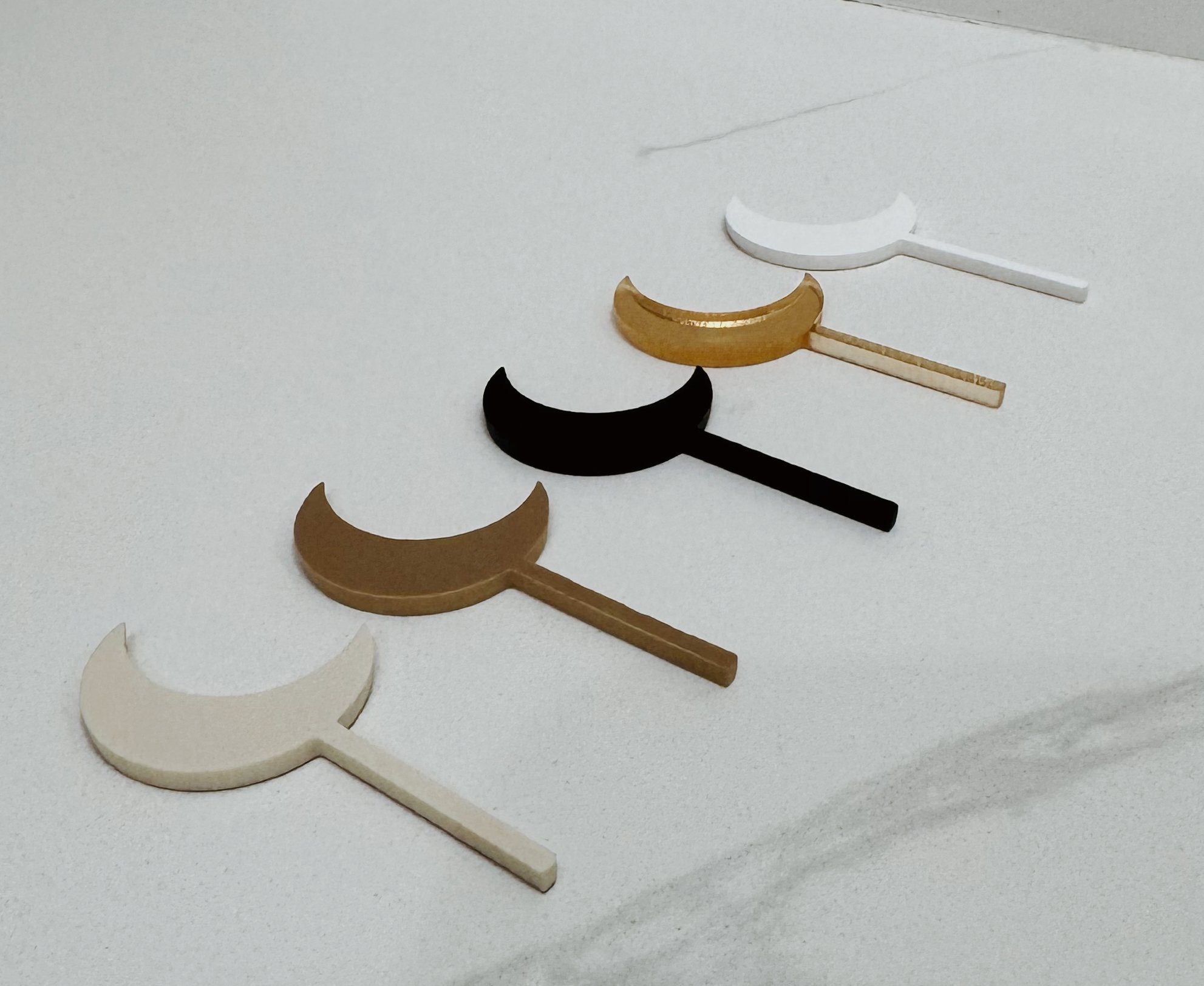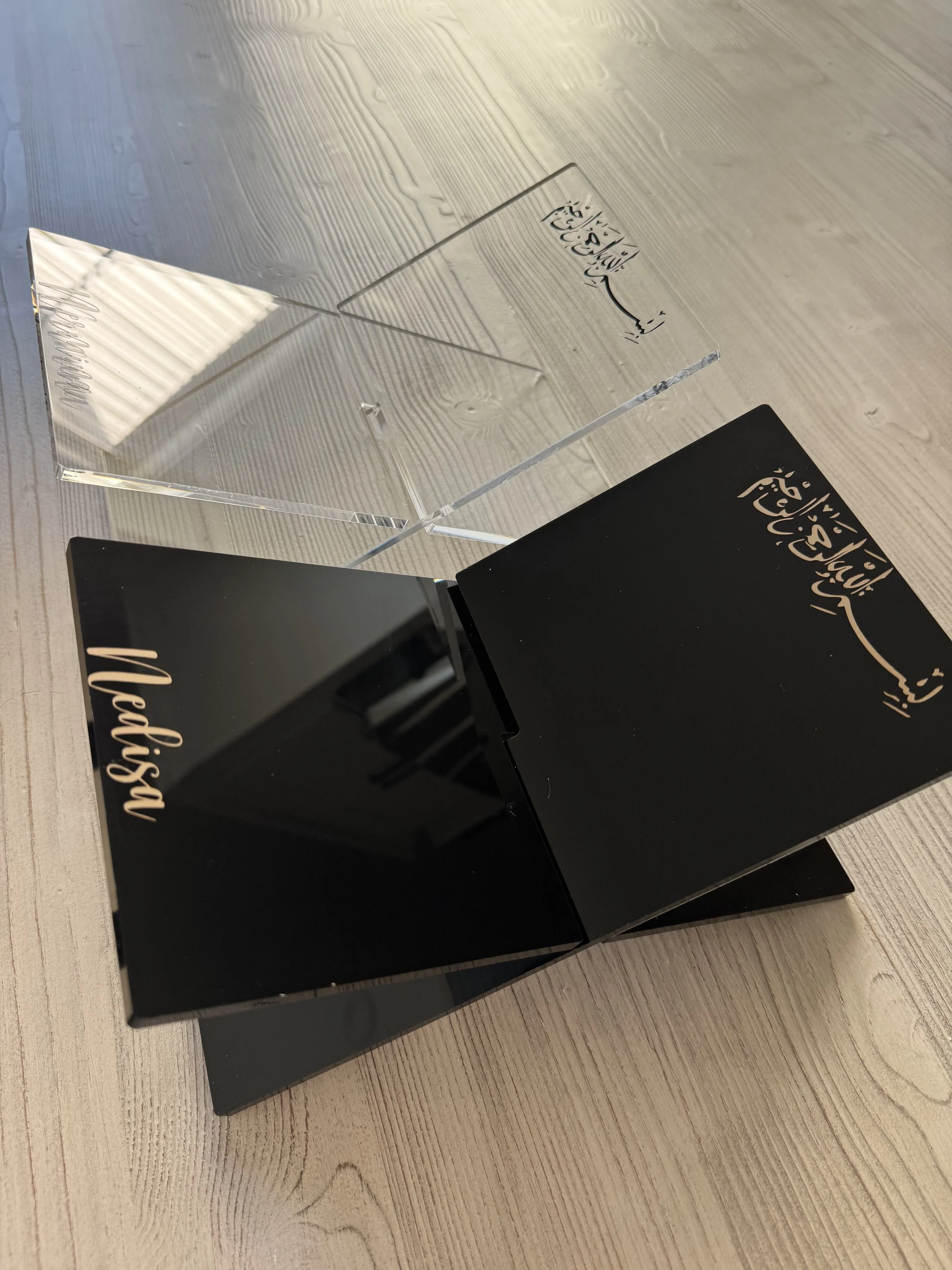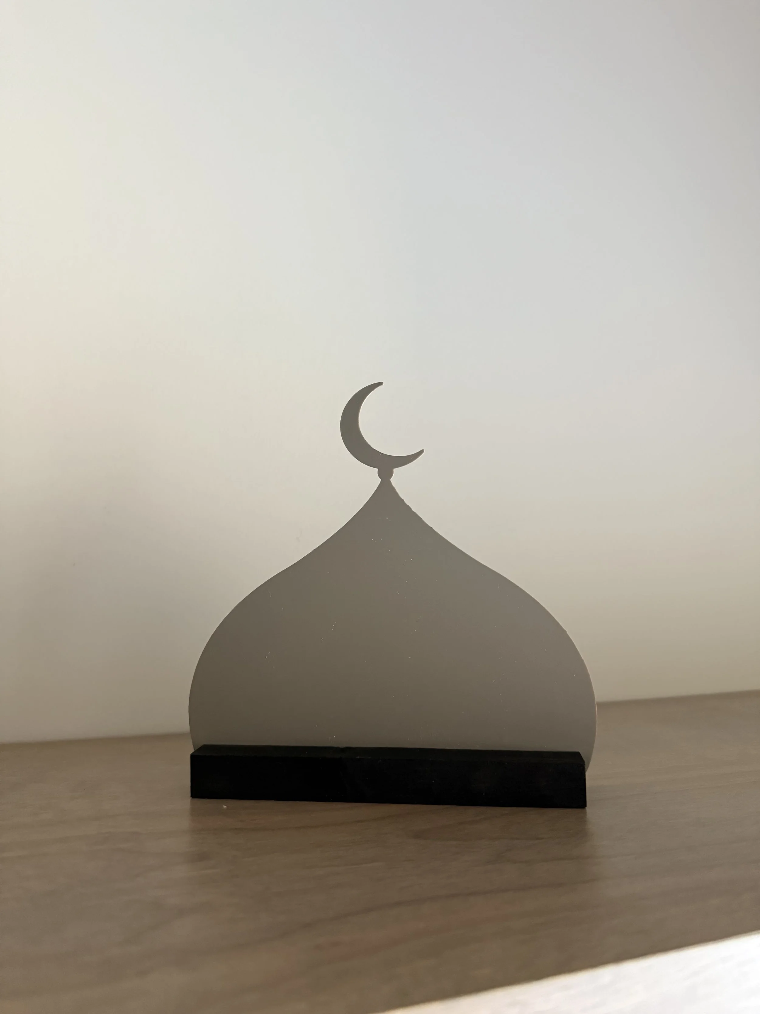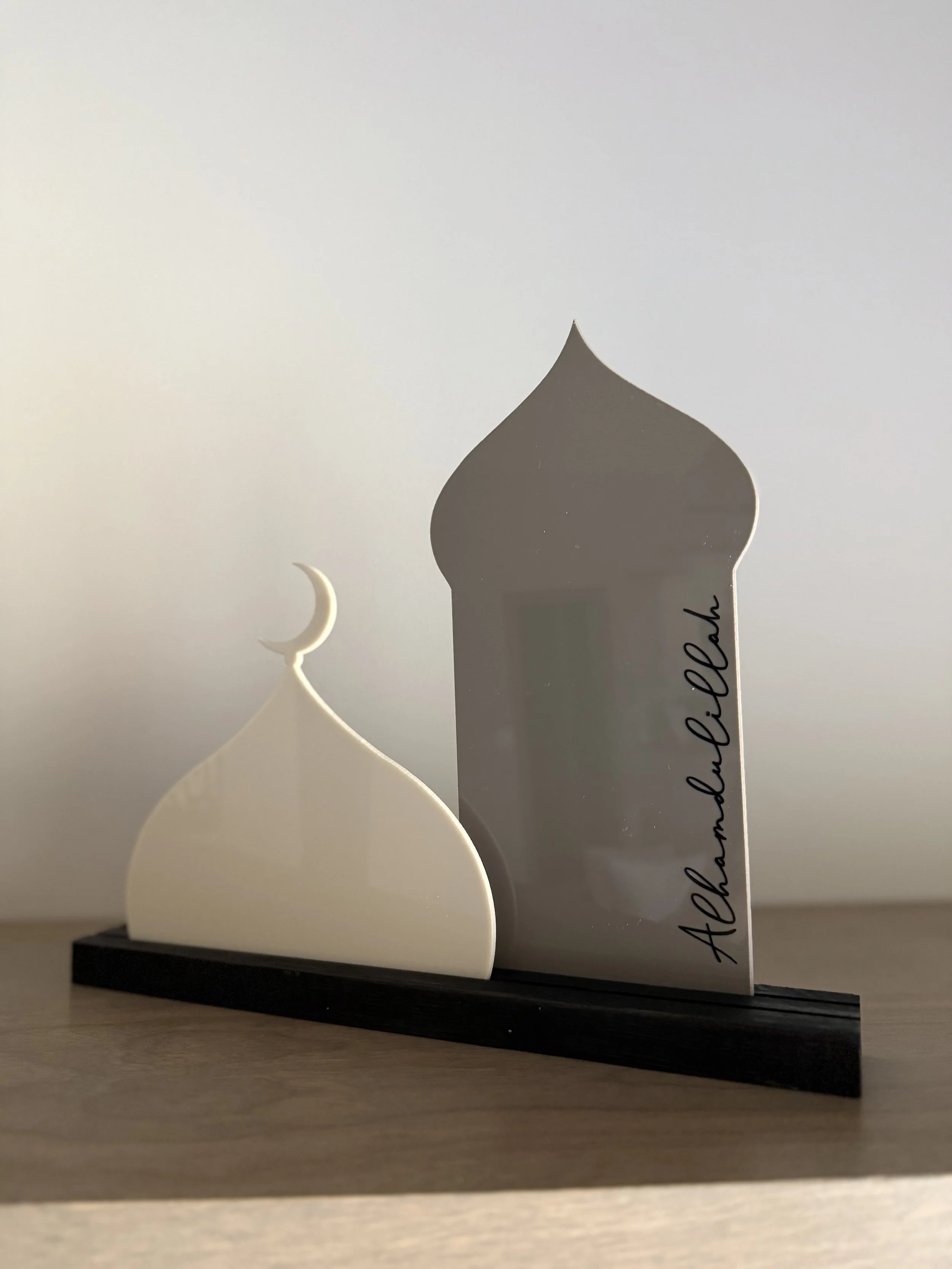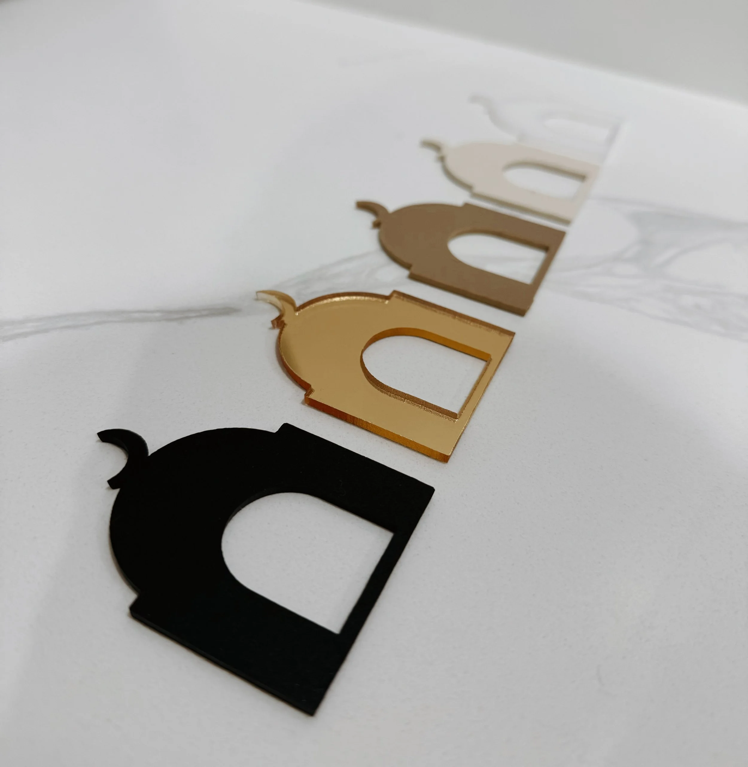 Geometric Crescent Moon from $22.00 Crescent Dome from $22.00 Bismillah Place Setting from $2.50 Alhamdulillah Dome Set $45.00 Crescent Moon Tags $0.75 Moon Picks $0.75 Napkin Rings from $2.00 Bless this Home Arabic Calligraphy $65.00 Alhamdulillah Script $65.00 Dome Mosque Silhouette Decor $12.00 Minaret Mosque Silhouette Decor $12.00 Mini Alhamdulillah $12.00 Quran stand $50.00 Alhamdulillah Arabic Calligraphy $15.00